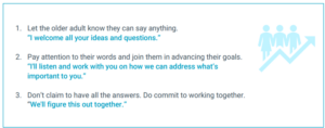 Sample tips from the guide for talking with older adults about what matters